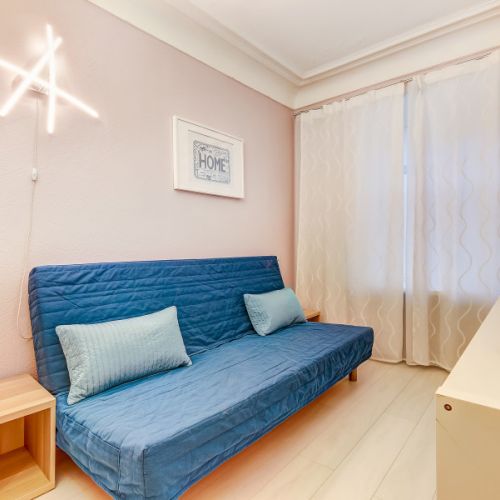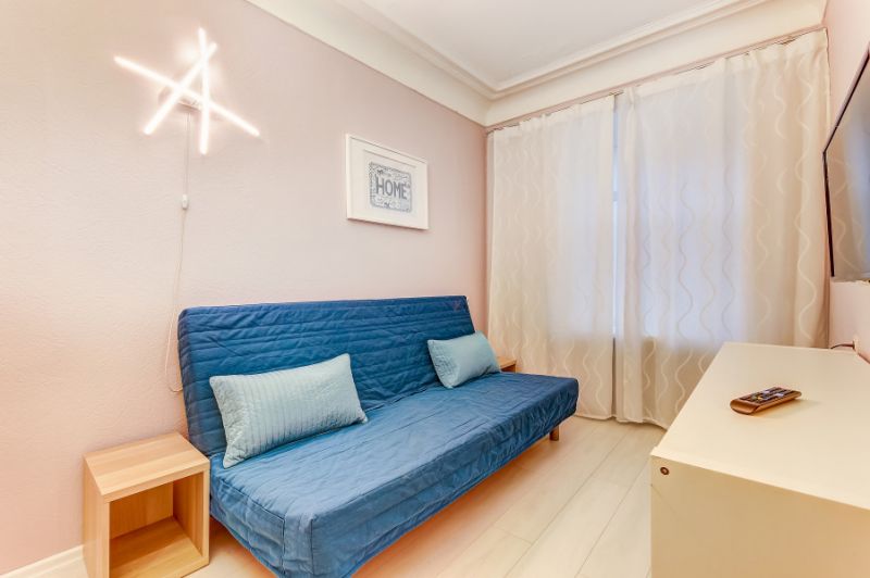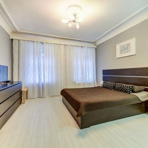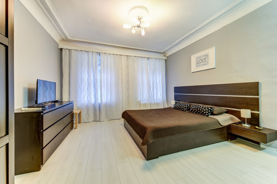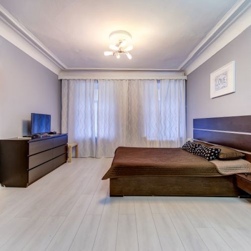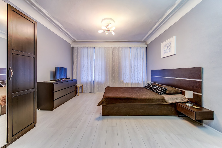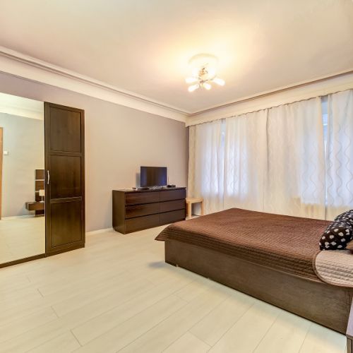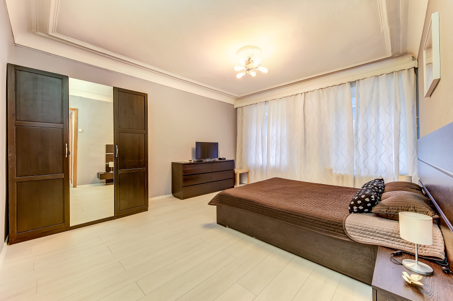 Апартаменты с 2 отдельными комнатами полностью оборудованы для комфортного проживания 4 человек. Гостям предоставляются чистые полотенца и постельное белье. В спальне установлены двуспальная кровать и раскладной двуспальный диван. Ванная комната чистая, отделана кафельной плиткой. В ней есть душевая кабина, раковина, туалет, зеркало с подсветкой и фен. В апартаментах предусмотрен быстрый Wi-Fi, большой ЖК-телевизор, стиральная машина, утюг, гладильная доска и сушилка. На кухне есть все необходимое для готовки и мытья посуды: микроволновая печь, встроенная плита, холодильник, чайник, вытяжка. Для удобства постояльцев предусмотрена парковка и охраняемая стоянка, расположенные в пешей доступности.